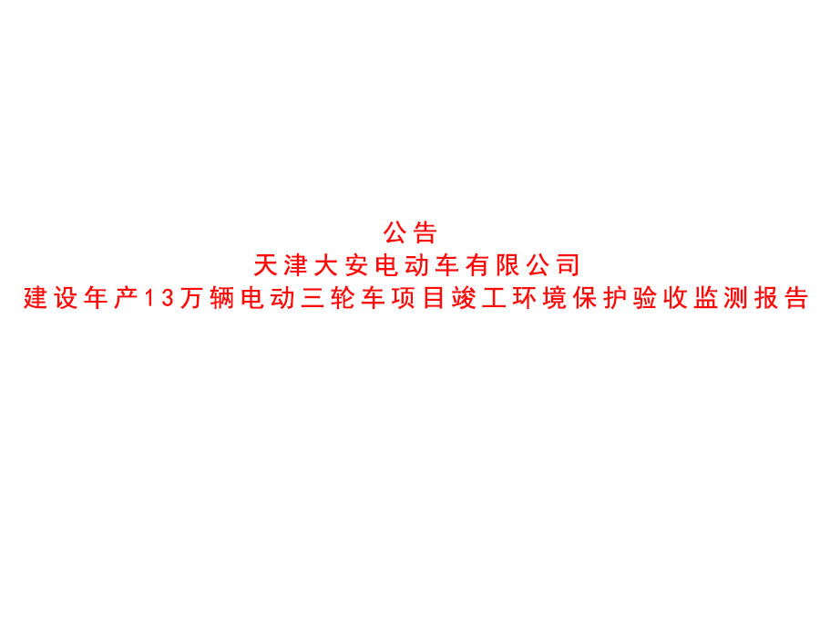 公司動(dòng)態(tài) 天津大安電動(dòng)車有限公司建設(shè)年產(chǎn)13萬輛電動(dòng)三輪車項(xiàng)目竣工環(huán)境保護(hù)驗(yàn)收監(jiān)測報(bào)告